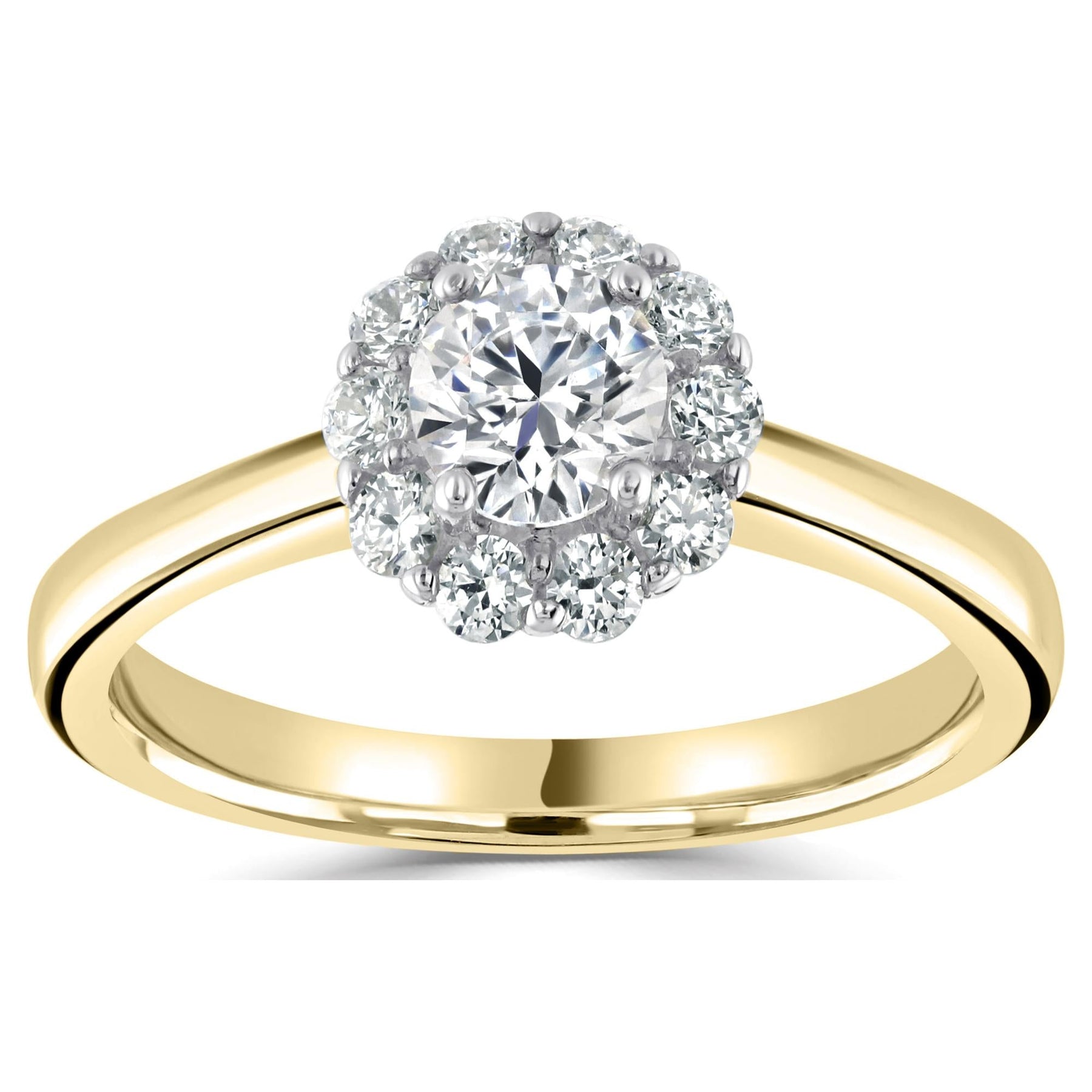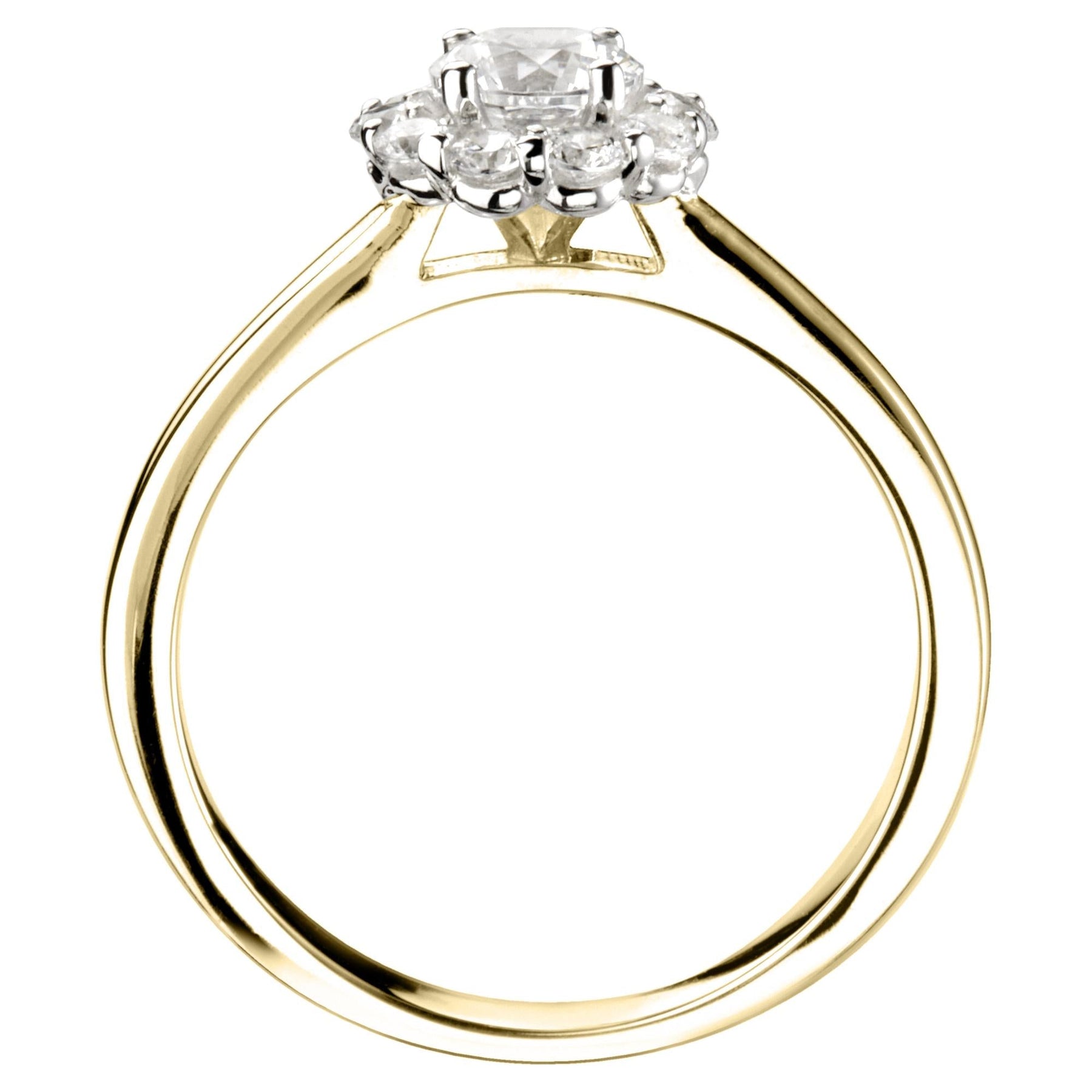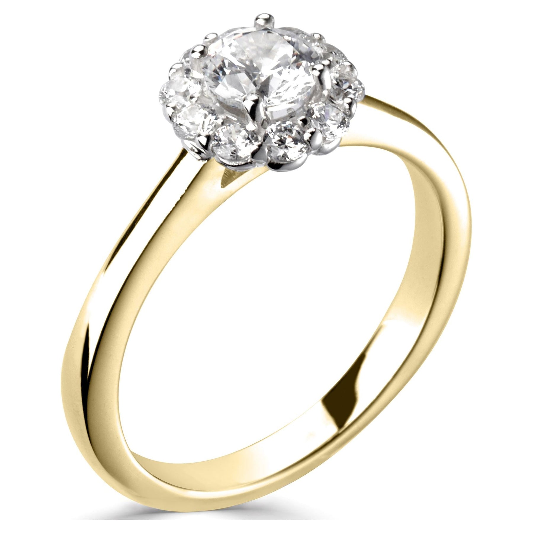 Round halo engagement ring with 0.25ct diamond halo and plain shoulders.