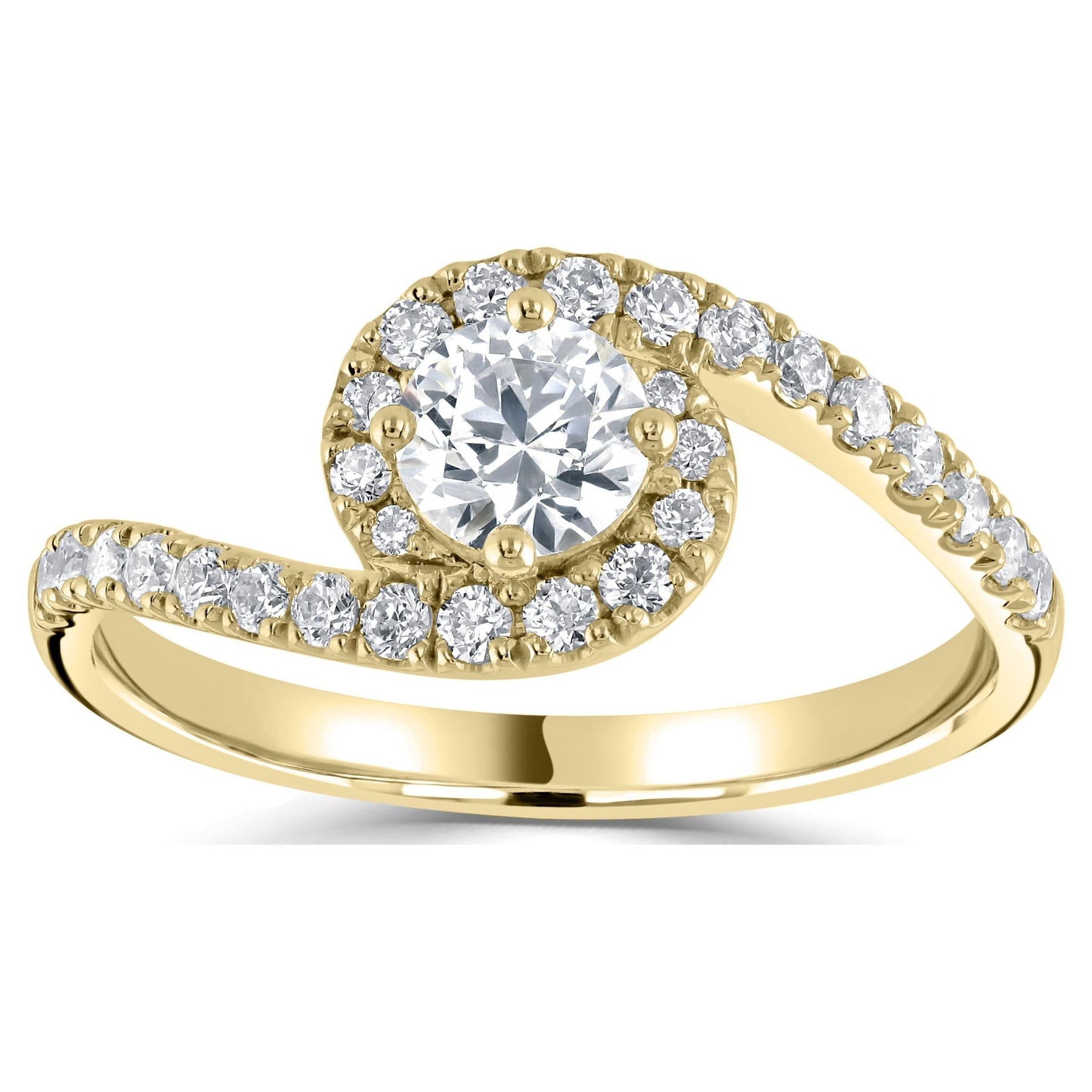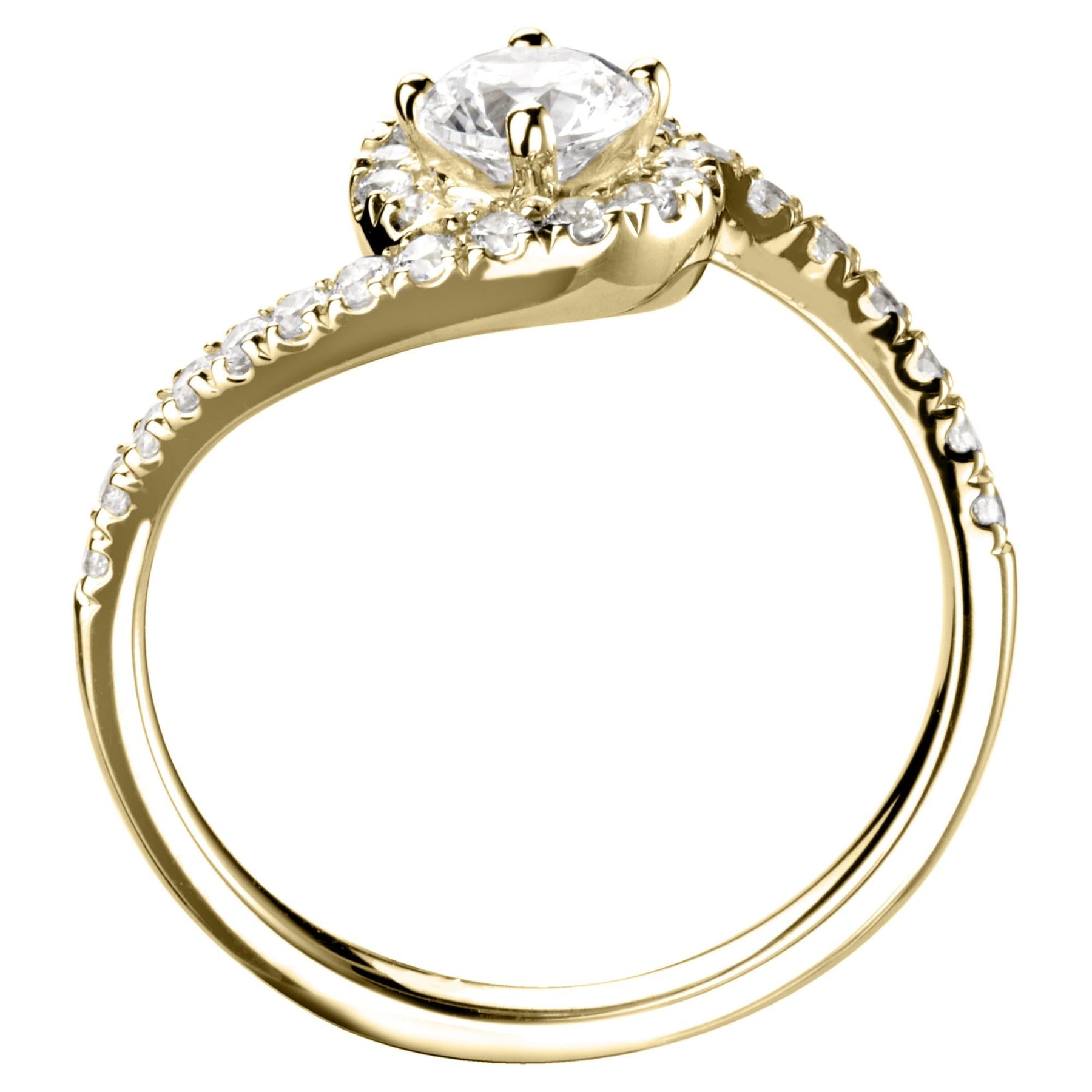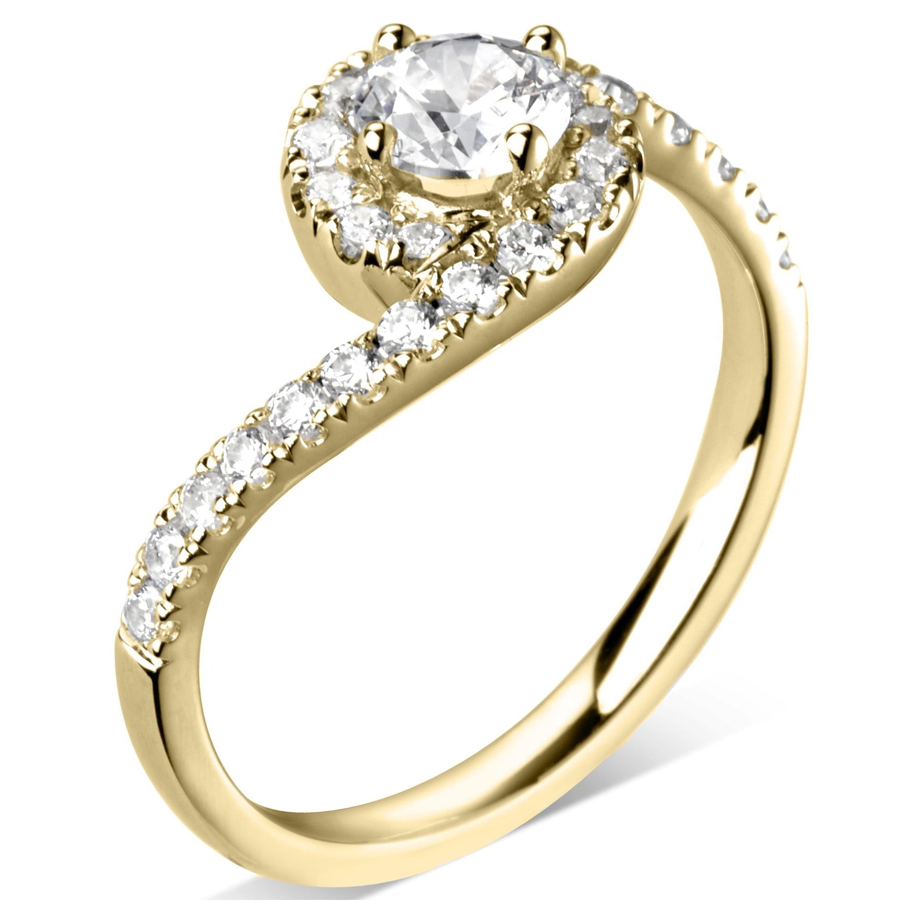 Round halo engagement ring with 0.31ct diamond halo and shoulders.
