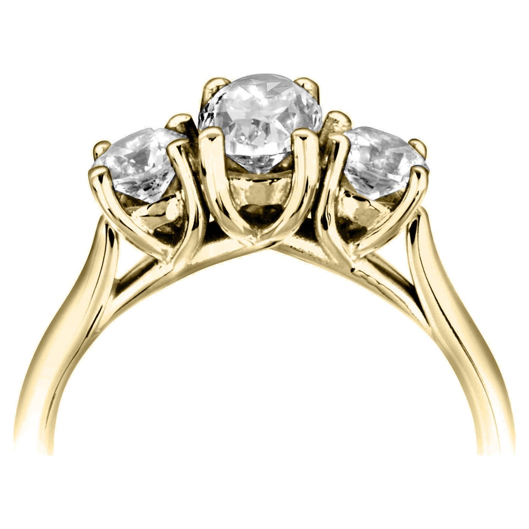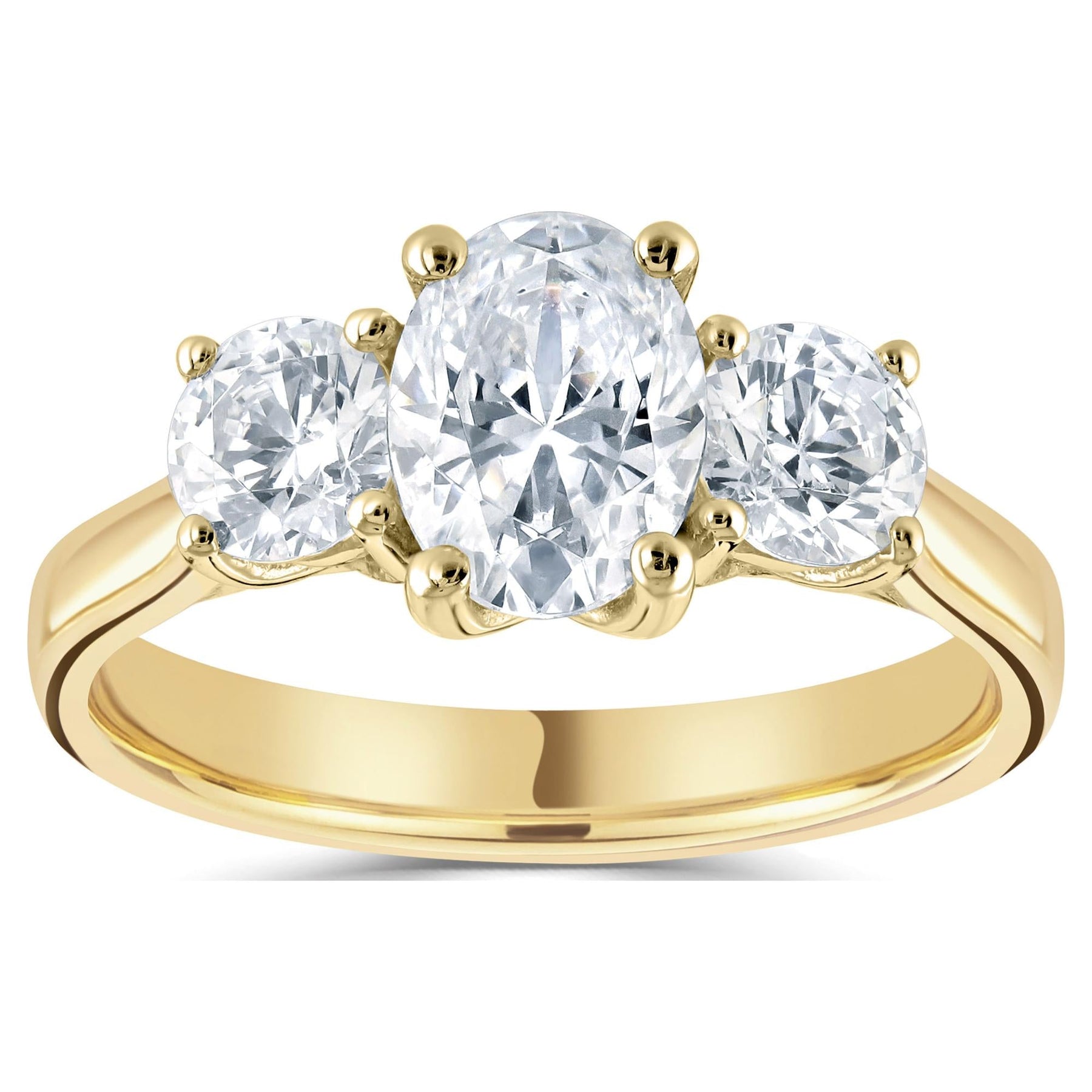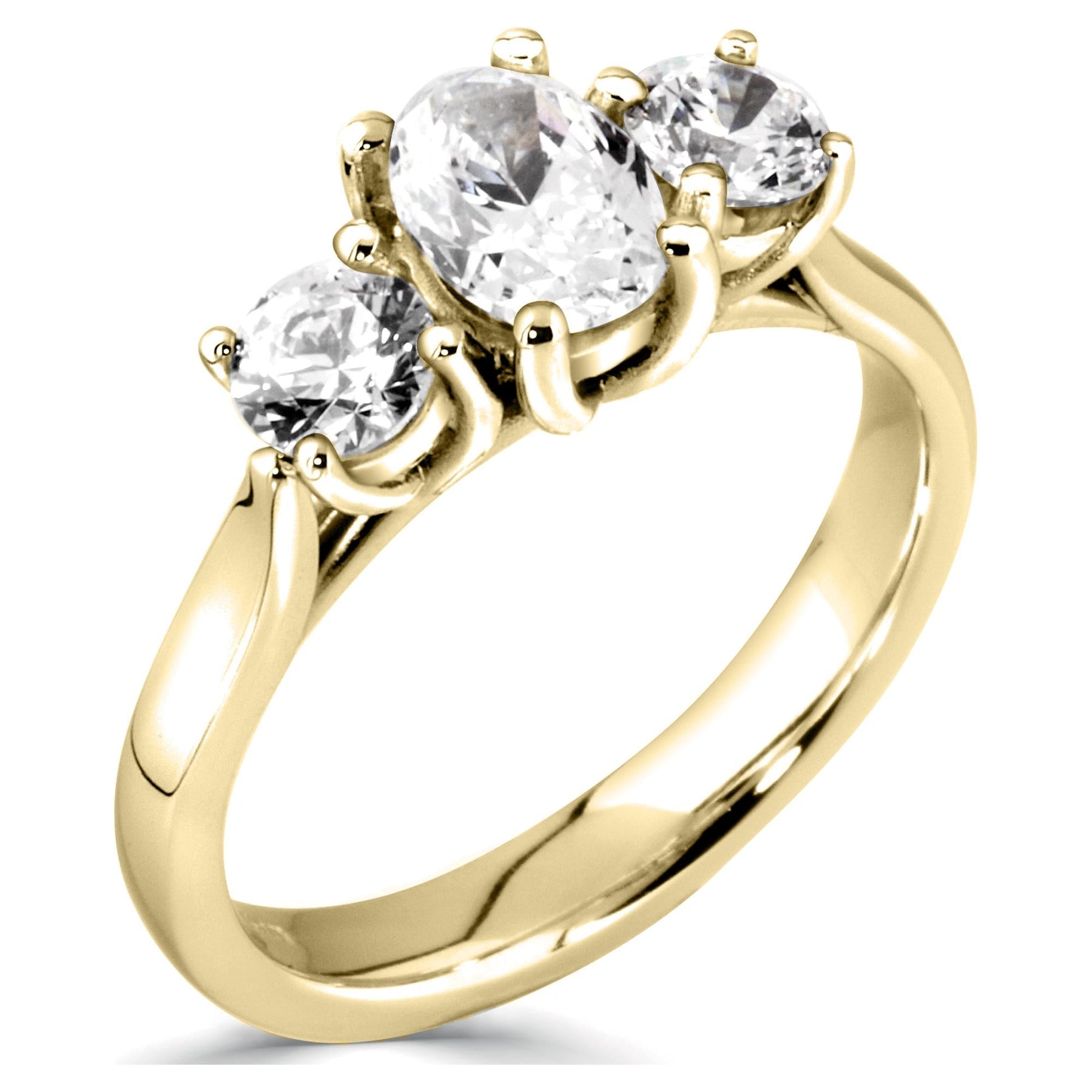 Oval trilogy engagement ring with plain shoulders, the round side diamonds will be H colour VS clarity, please call us should you require a different quality.