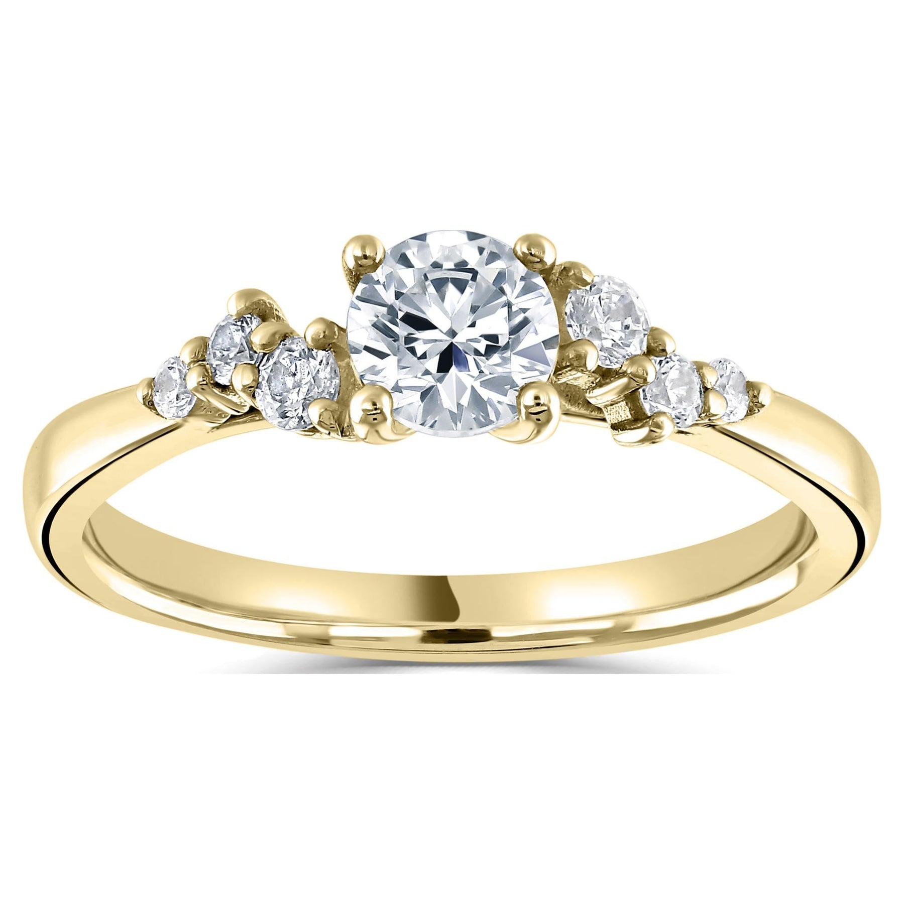 Round solitaire engagement ring with 0.09ct round claw set diamond shoulders.