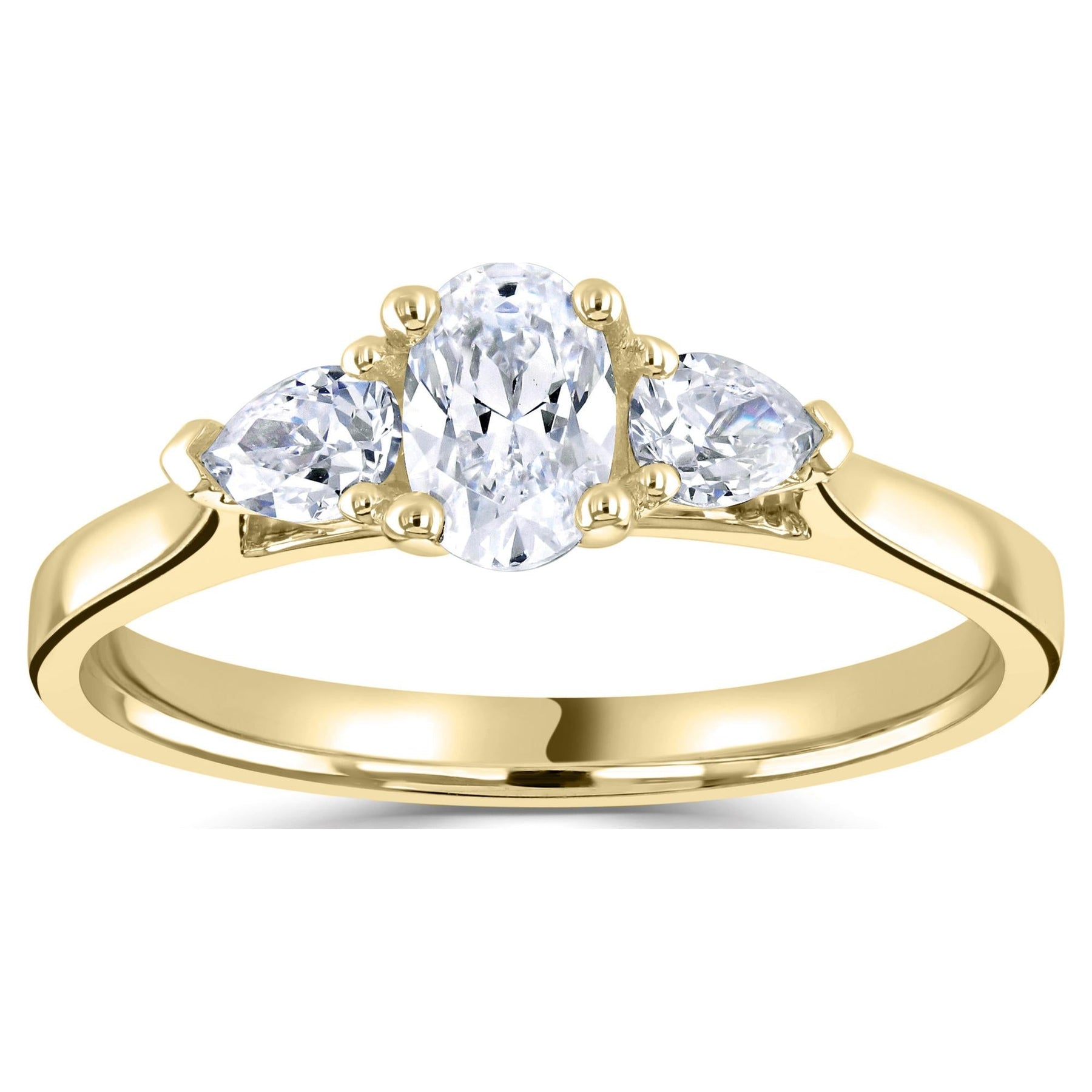 Round trilogy engagement ring with 0.26ct pear shape side diamonds.
