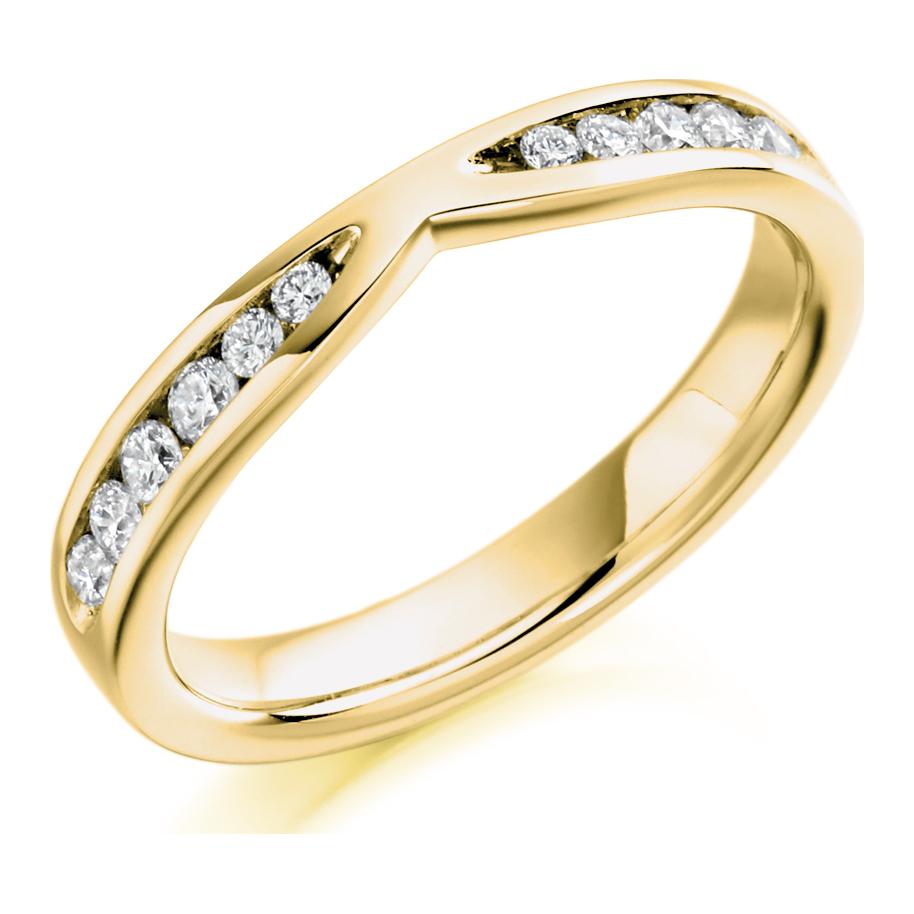 Shaped Channel Set Diamond Ring. 0.37ct Round Brilliant Cut Natural Diamonds. 45% Diamond Coverage. Approximate Ring Width 3.2mm.