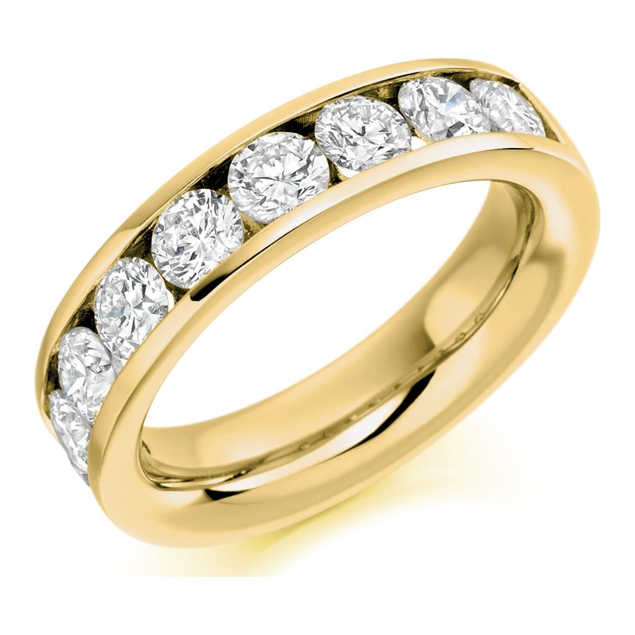 Channel Set Diamond Ring. 2.00ct Round Brilliant Cut Natural Diamonds. 50% Diamond Coverage. Approximate Ring Width 5mm.