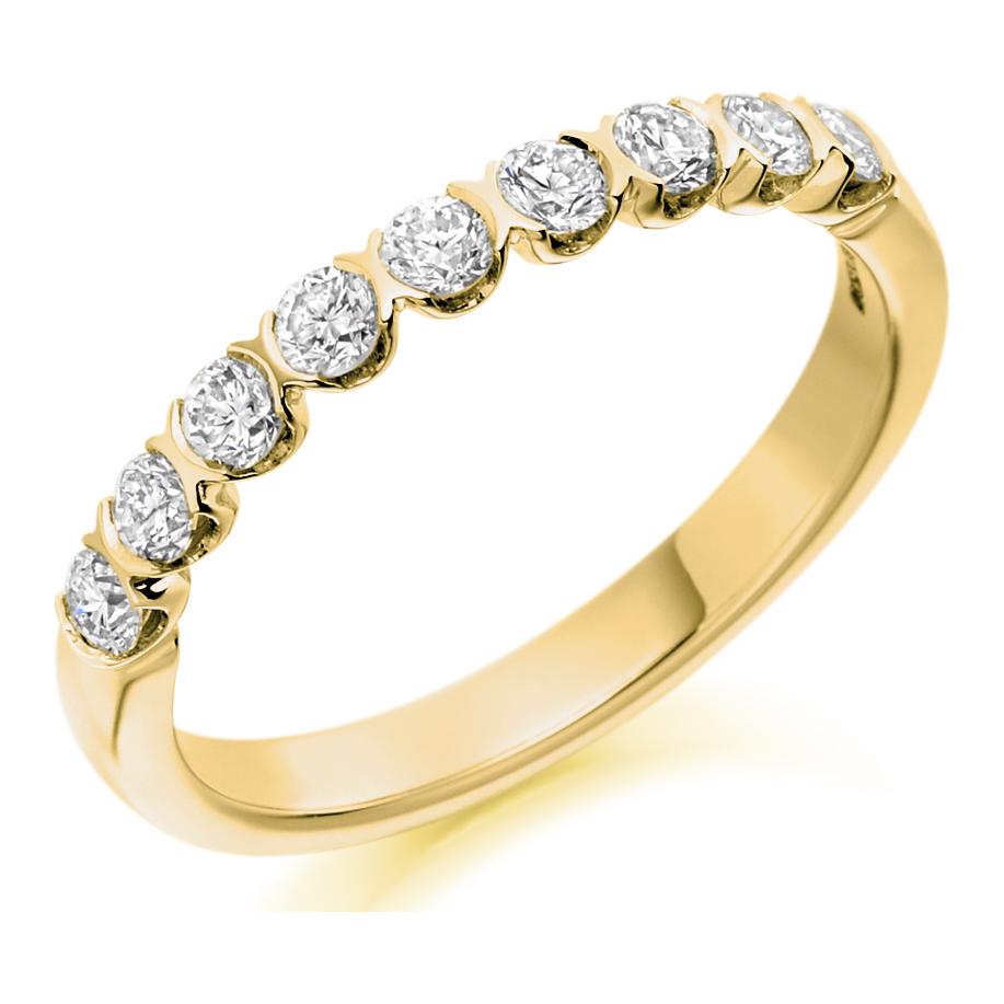 Bar Set Diamond Ring. 0.50ct Round Brilliant Cut Natural Diamonds. 40% Diamond Coverage. Approximate Ring Width 2.5mm.
