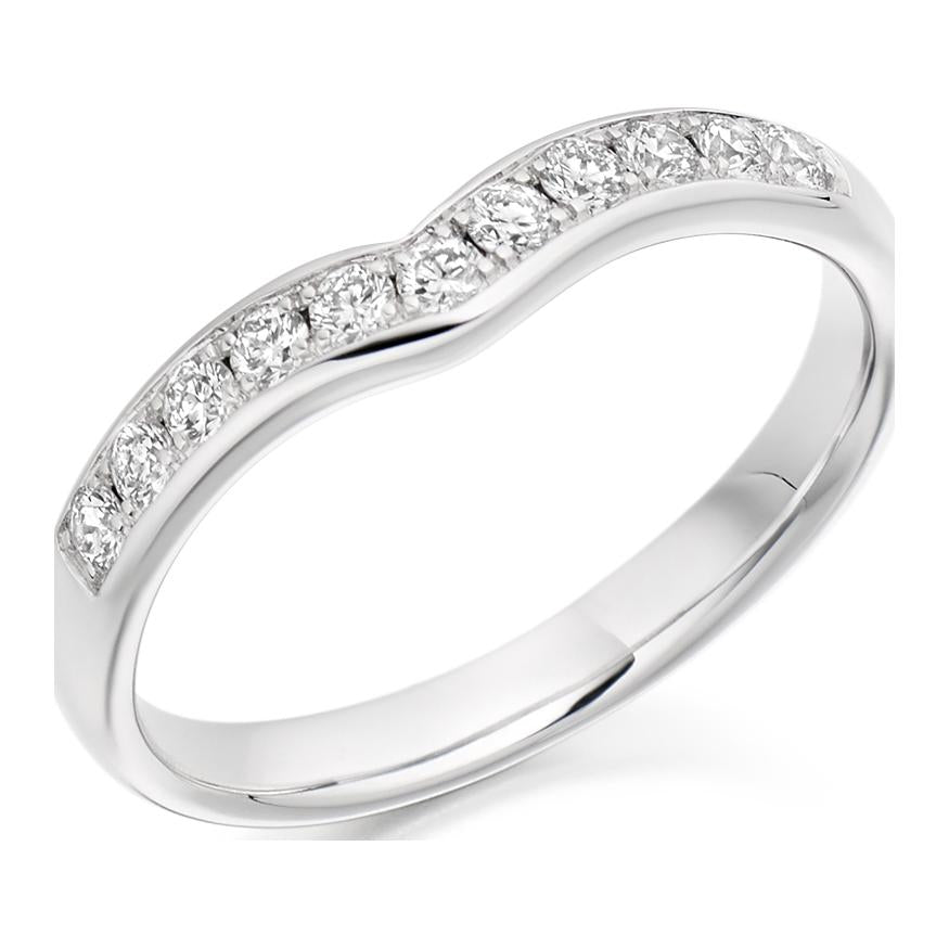 Curved and Shapped Diamond Ring. 0.30ct Round Brilliant Cut Natural Diamonds. 33% Diamond Coverage. Approximate Ring Width 3mm.