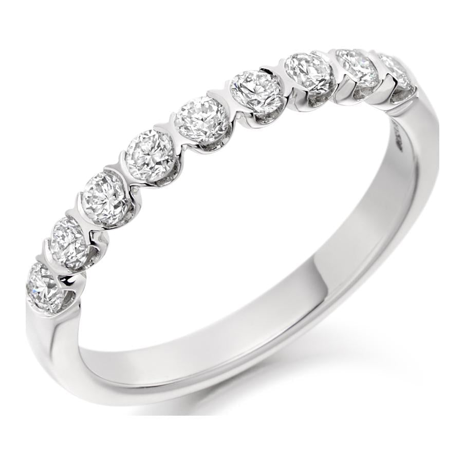 Bar Set Diamond Ring. 0.50ct Round Brilliant Cut Natural Diamonds. 40% Diamond Coverage. Approximate Ring Width 2.5mm.