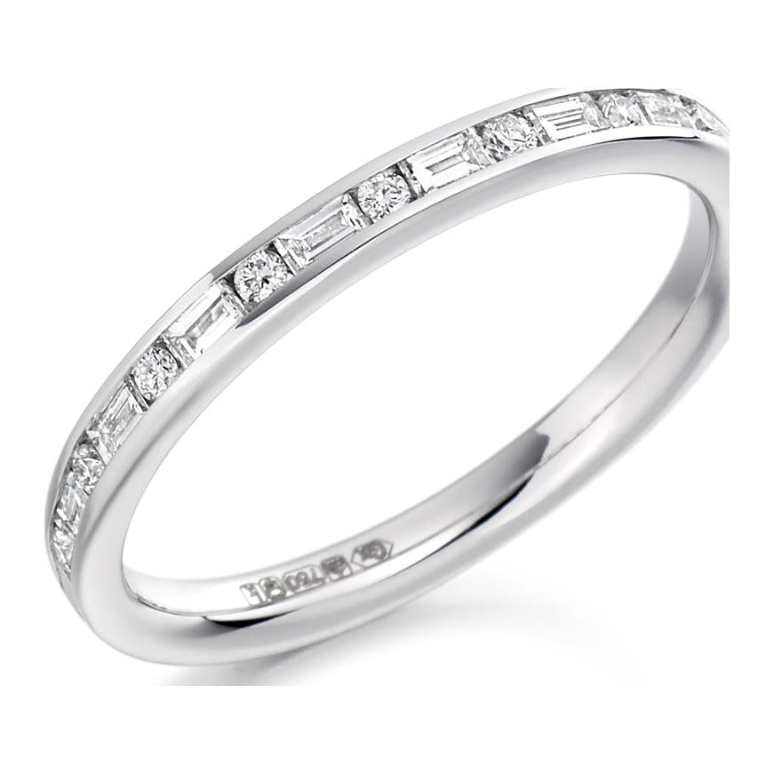 Channel Set Diamond Ring. 0.30ct Baguette and Round Brilliant Cut Lab Grown Diamonds. 50% Diamond Coverage. Approximate Ring Width 2.3mm.