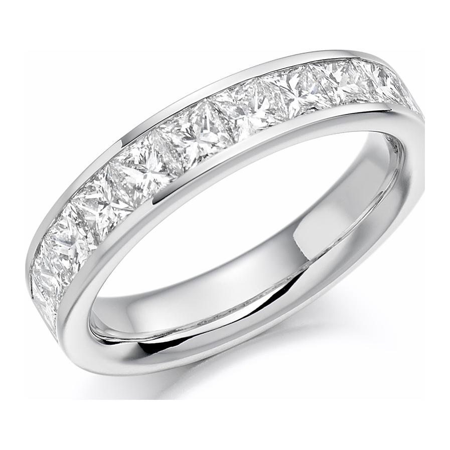 Channel Set Diamond Ring. 1.50ct Princess Cut Lab Grown Diamonds. 50% Diamond Coverage. Approximate Ring Width 4.3mm.