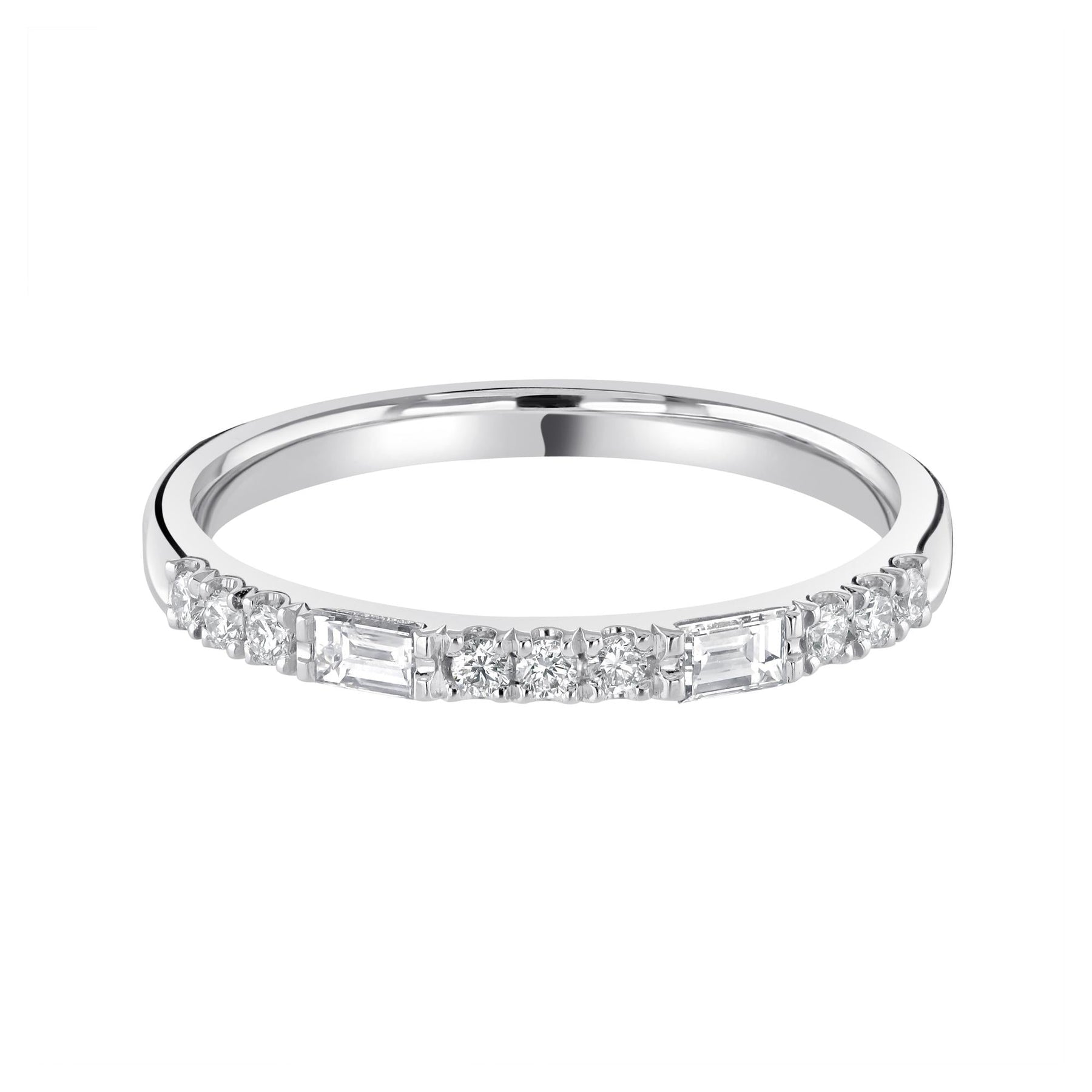 Claw Set Diamond Wedding Ring. 0.24ct Baguette and Round Brilliant Cut Lab Grown Diamonds. Approximate Ring Width 1.9mm.