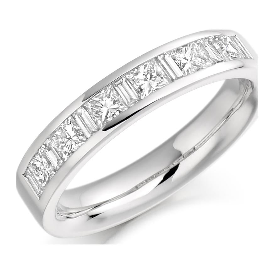 Channel Set Diamond Ring. 1.00ct Princess and Baguette Cut Lab Grown Diamonds. 40% Diamond Coverage. Approximate Ring Width 4.2mm.