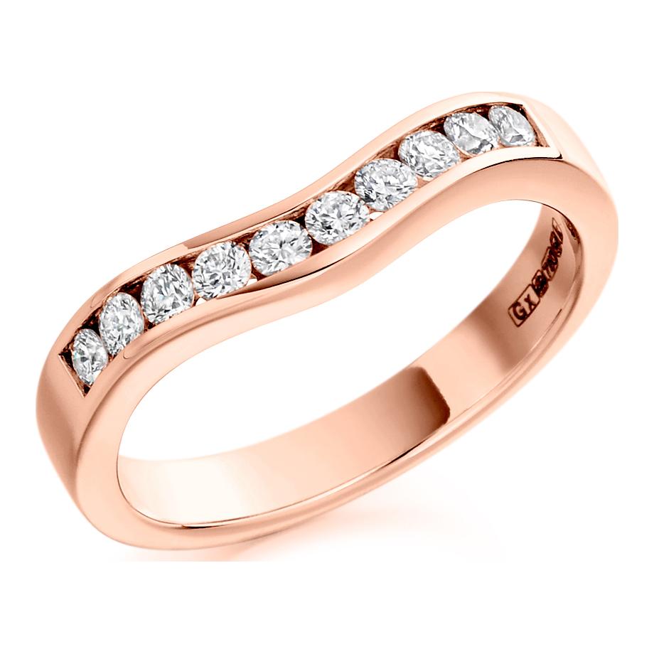 Curved Channel Set Diamond Ring. 0.33ct Round Brilliant Cut Diamonds. 33% Diamond Coverage. Approximate Ring Width 3.3mm.
