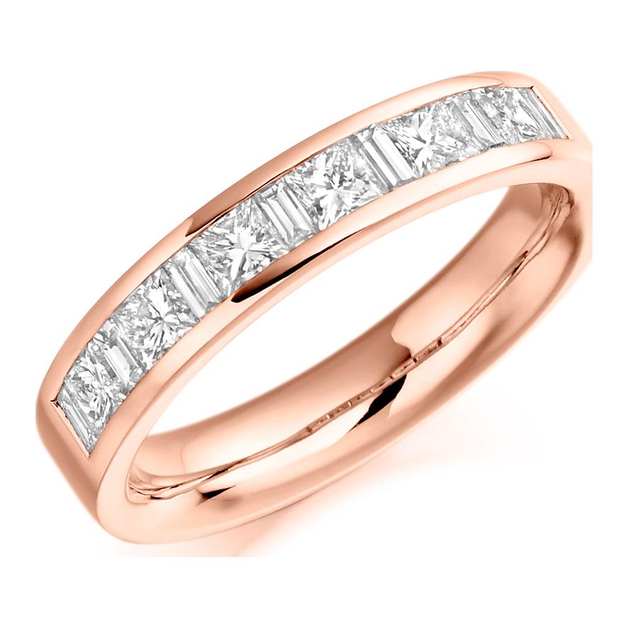 Channel Set Diamond Ring. 1.00ct Princess and Baguette Cut Diamonds. 40% Diamond Coverage. Approximate Ring Width 4.2mm.