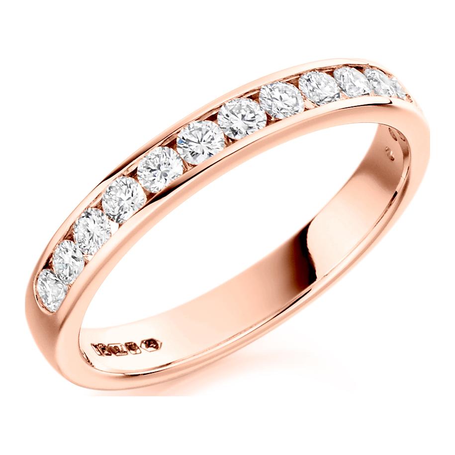 Channel Set Diamond Ring. 0.50ct Round Brilliant Cut Diamonds. 50% Diamond Coverage. Approximate Ring Width 3mm.