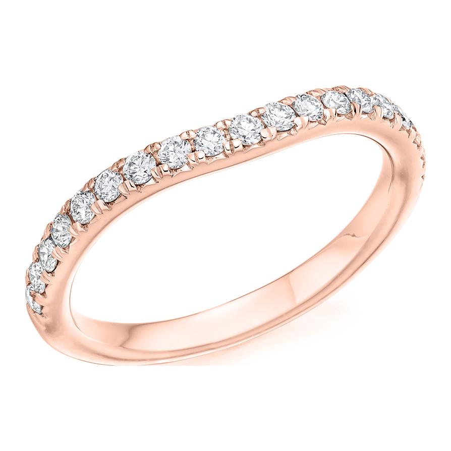 Curved micro-Claw Set Diamond Ring. 0.35ct Round Brilliant Cut Diamonds. 50% Diamond Coverage. Approximate Ring Width 2.1mm.