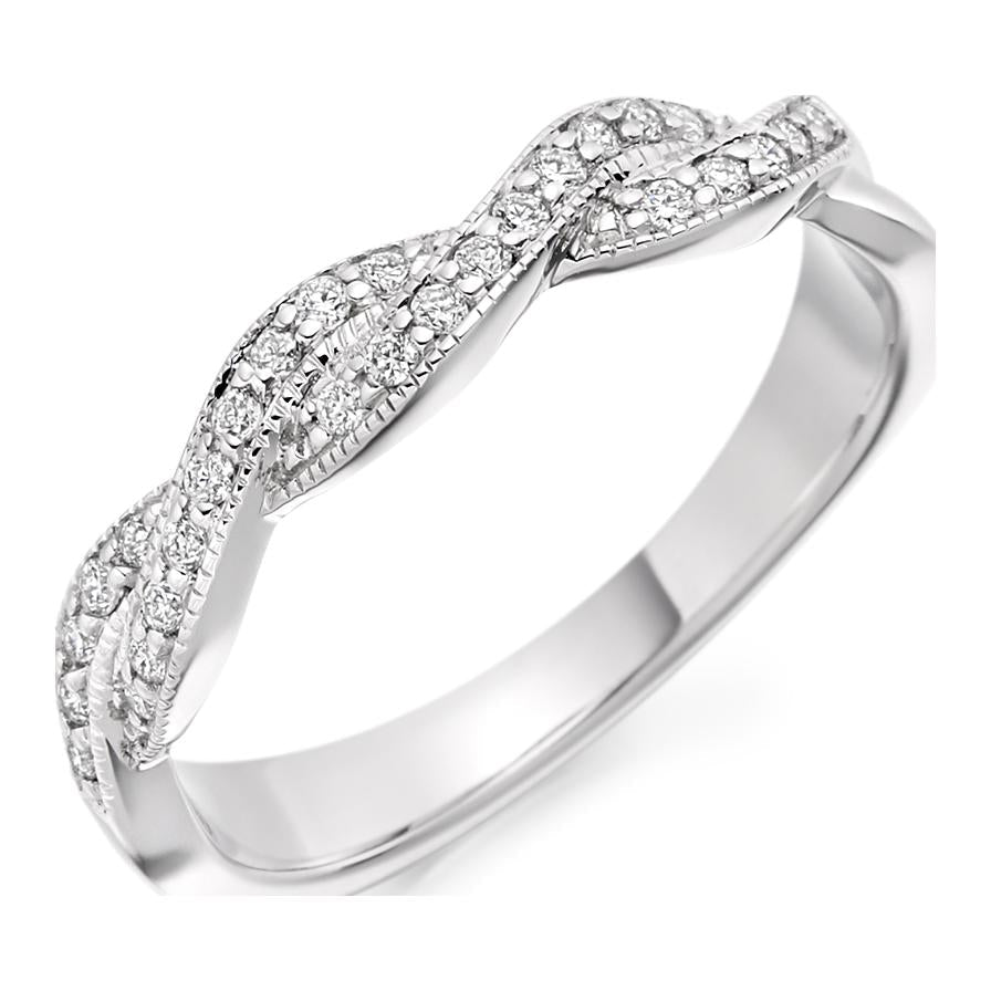 Shaped Diamond Twist Wedding Ring. 0.22ct Round Brilliant Cut Lab Grown Diamonds. 40% Diamond Coverage. Approximate Ring Width 3.9mm.