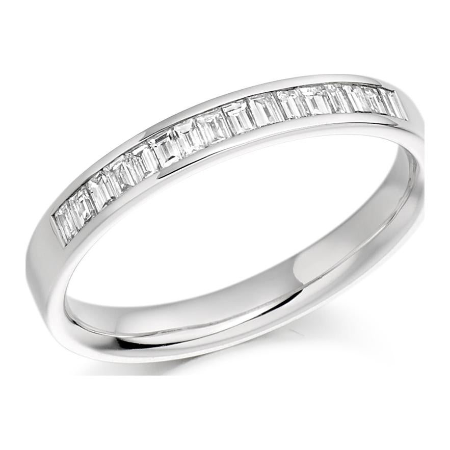 Channel Set Diamond Ring. 0.33ct Baguette Cut Lab Grown Diamonds. 33% Diamond Coverage. Approximate Ring Width 2.8mm.