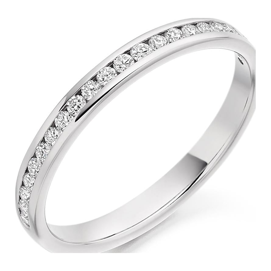 Channel Set Diamond Ring. 0.25ct Round Brilliant Cut Natural Diamonds. 50% Diamond Coverage. Approximate Ring Width 2.5mm.
