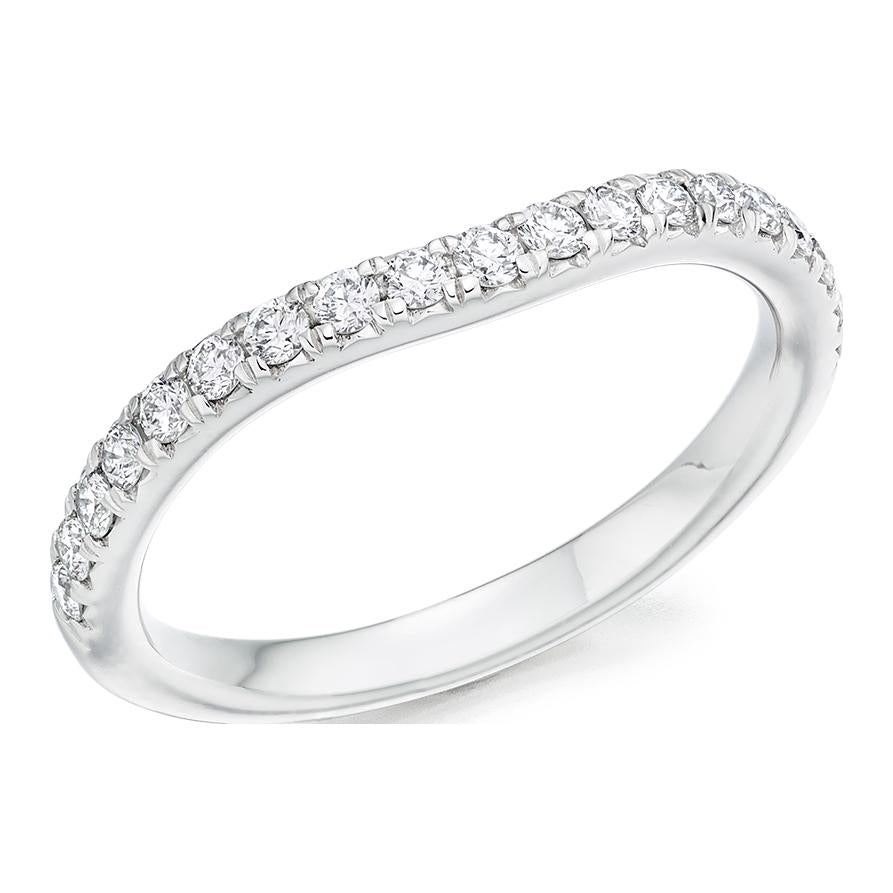 Curved micro-Claw Set Diamond Ring. 0.35ct Round Brilliant Cut Lab Grown Diamonds. 50% Diamond Coverage. Approximate Ring Width 2.1mm.