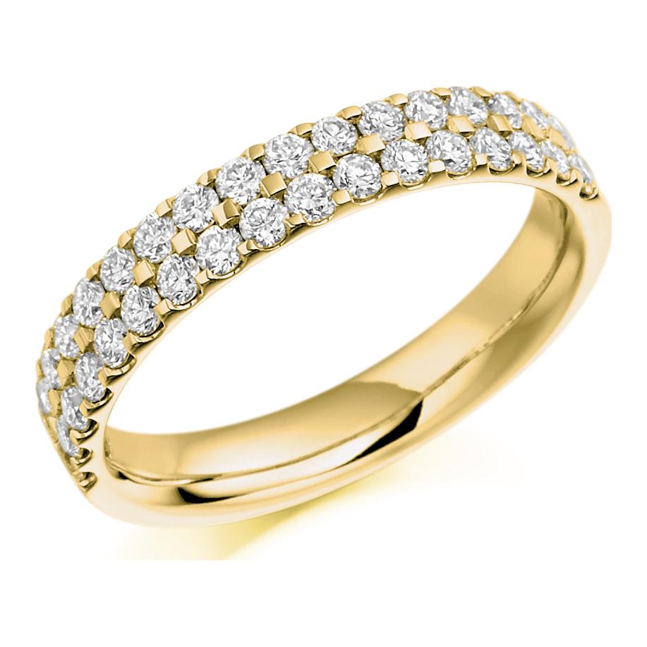 Double Row Micro-Claw Set Diamond Ring. 0.75ct Round Brilliant Cut Lab Grown Diamonds. 50% Diamond Coverage. Approximate Ring Width 3.7mm.