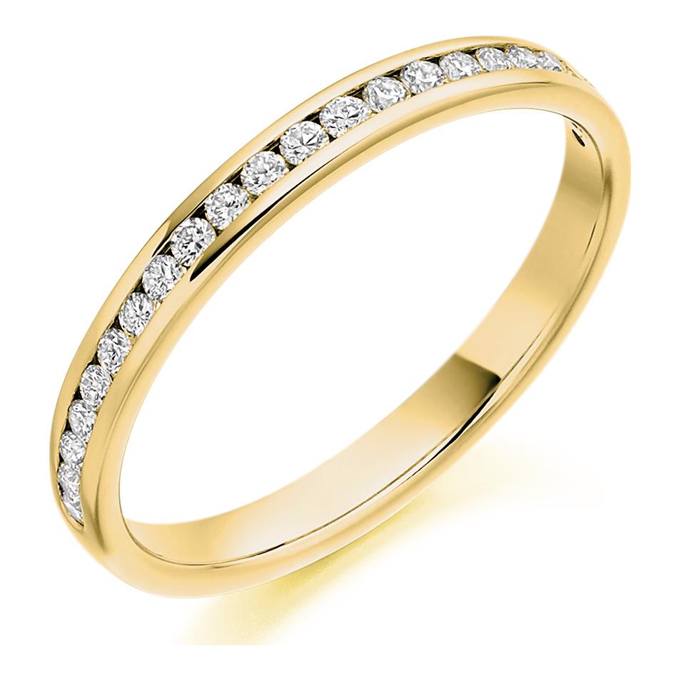 Channel Set Diamond Ring. 0.25ct Round Brilliant Cut Lab Grown Diamonds. 50% Diamond Coverage. Approximate Ring Width 2.5mm.