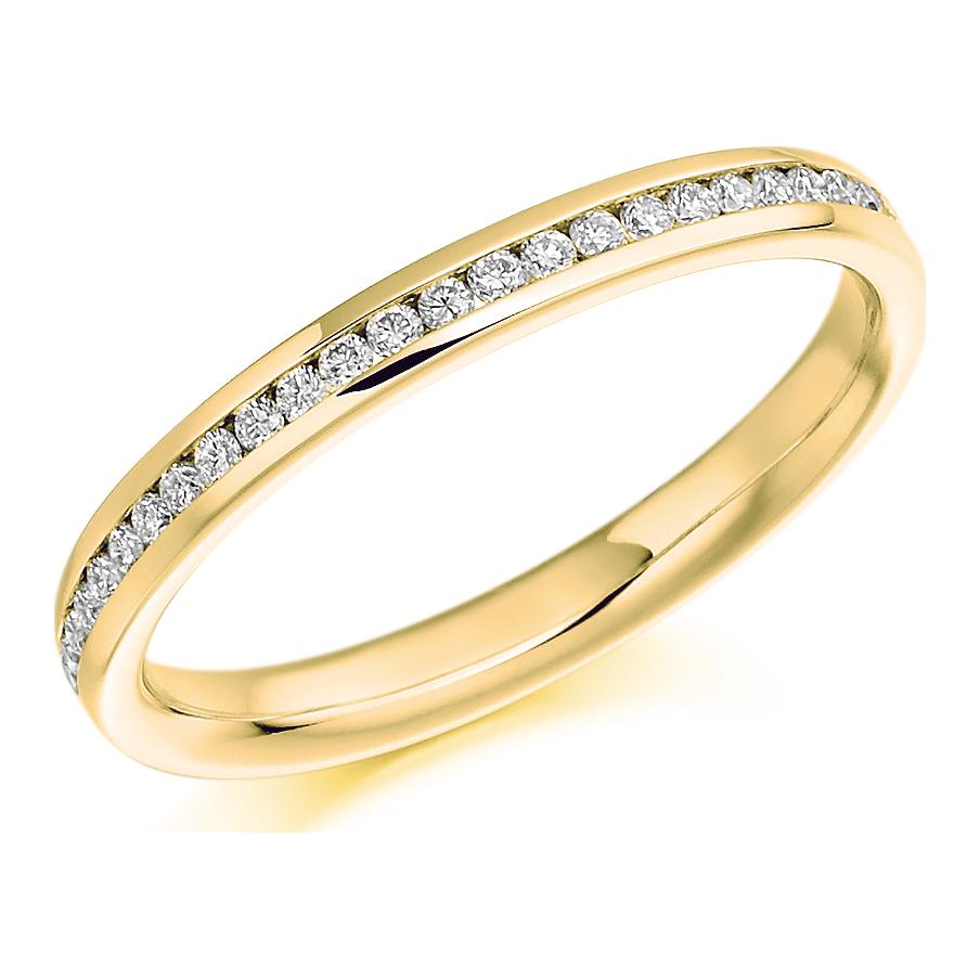 Channel Set Diamond Ring. 0.15ct Round Brilliant Cut Lab Grown Diamonds. 45% Diamond Coverage. Approximate Ring Width 2.4mm.