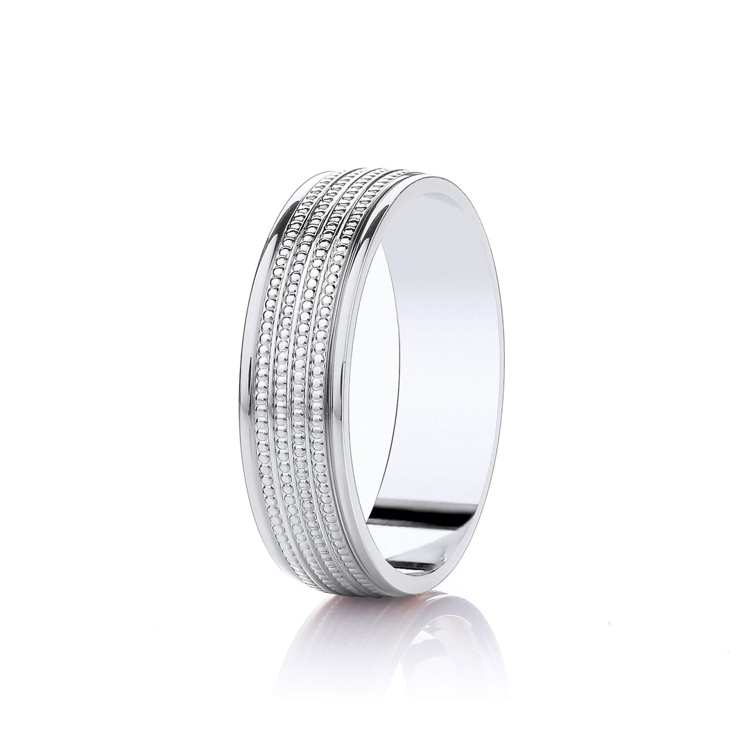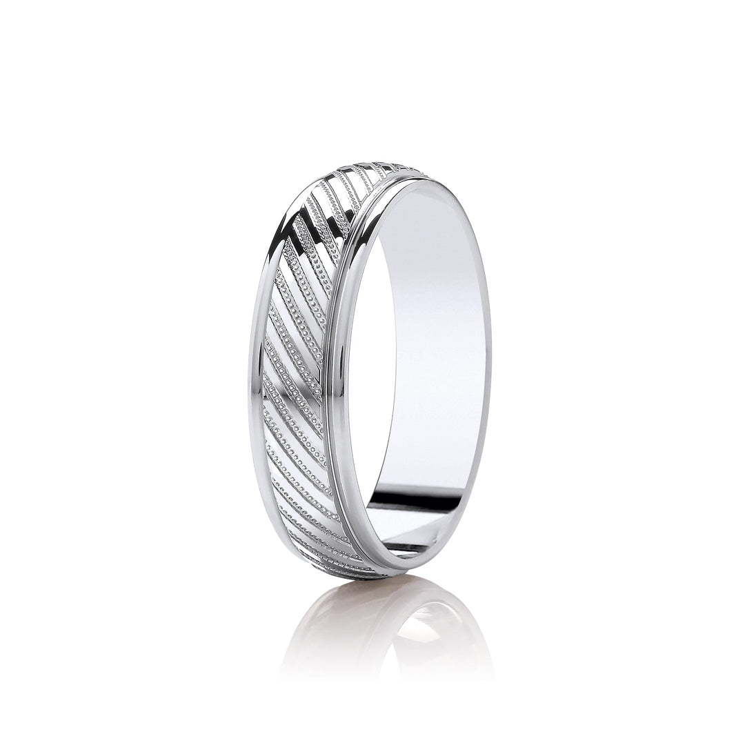 Mens Wedding Patterned White Gold Platinum