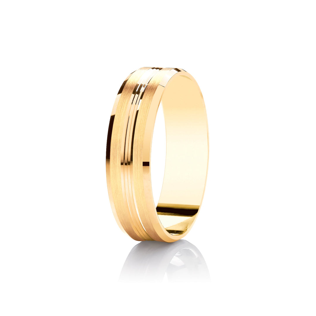 Mens Wedding Patterned Yellow Gold