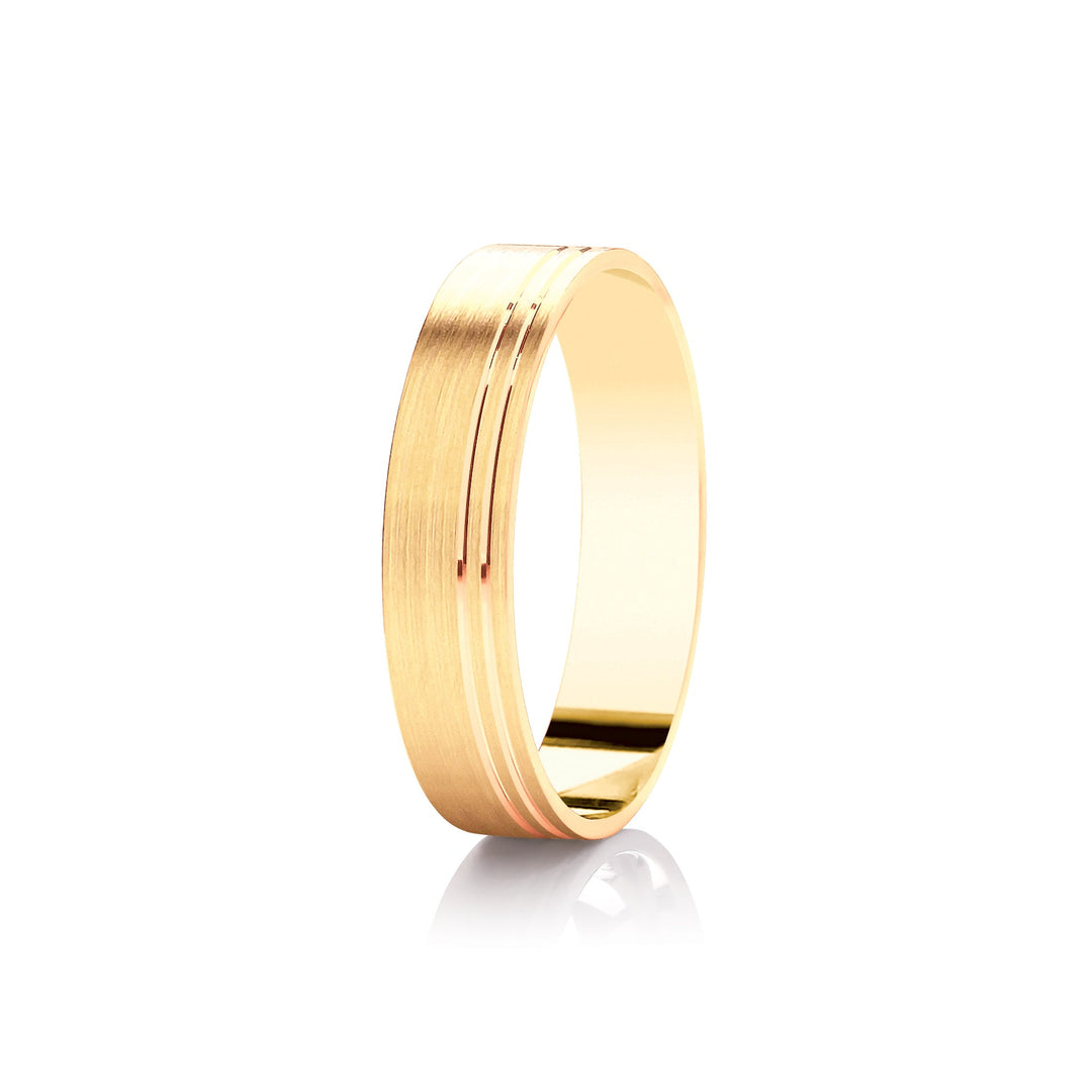 Mens Wedding Patterned Yellow Gold